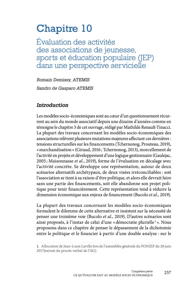 Évaluation des activités des associations de jeunesse, sports et éducation populaire (JEP) dans une perspective servicielle